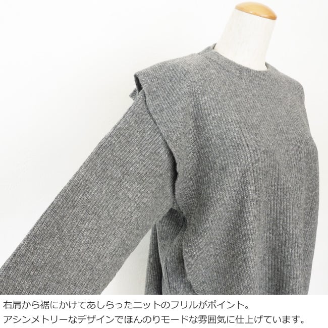 ドレープ感のある右肩のフリルデザインがアクセントになっています。