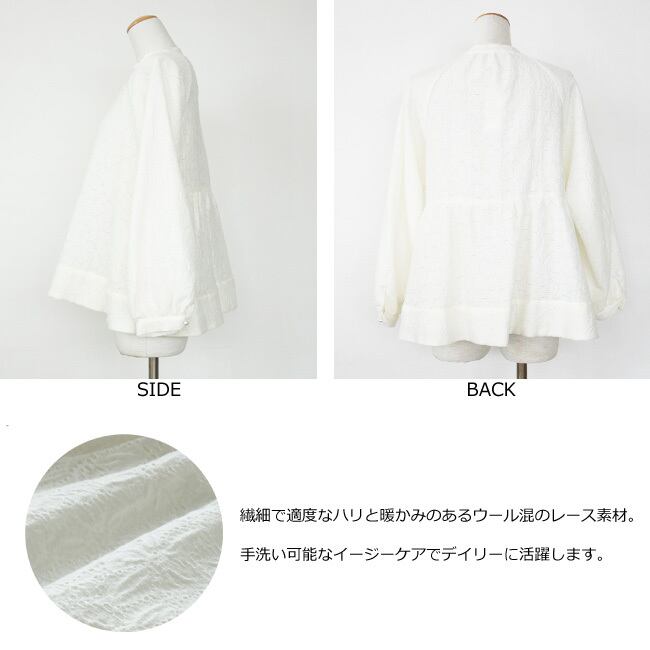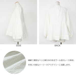 繊細で暖かみのあるウール混のレース素材を使用したブラウス。