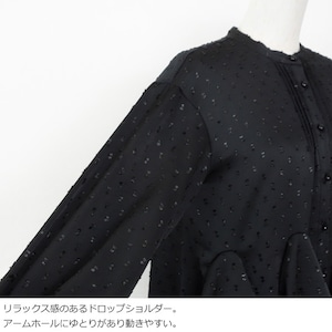 フロントと袖口にあしらったパールボタンが華やかで上品なアクセントに。