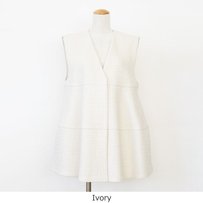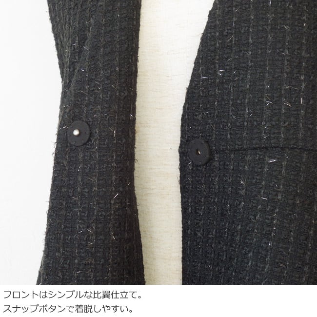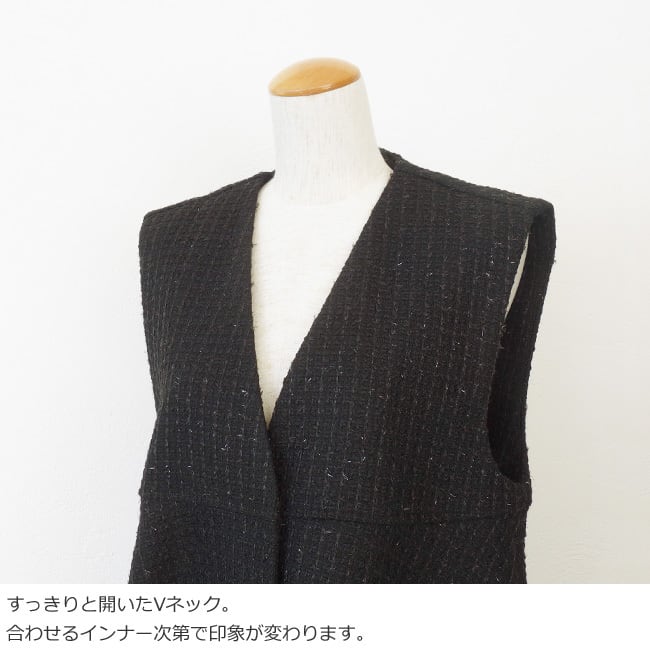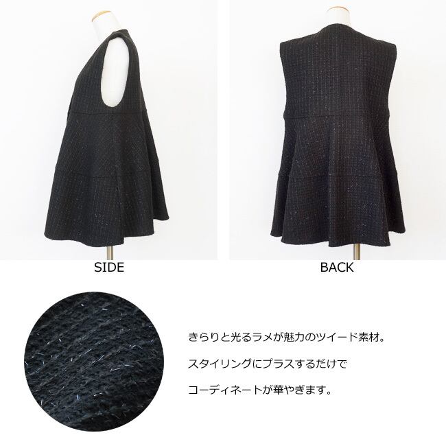 きらりと光るラメとシャギーの起毛感が華やかなツイード素材のベスト。