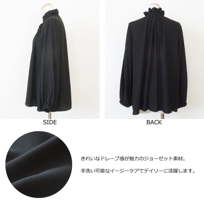 柔らかく落ち感のあるジョーゼット素材を使用したブラウス。