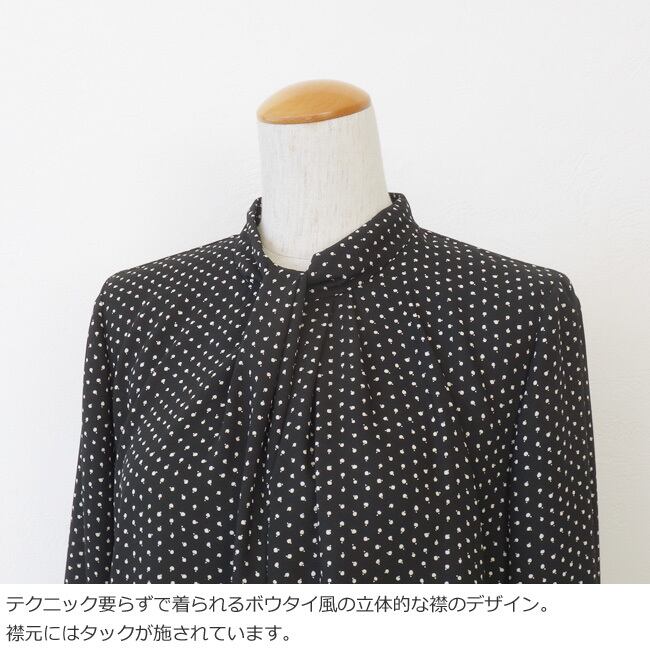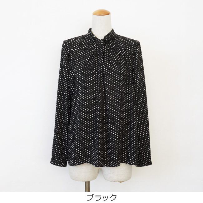 PASSIONE (パシオーネ) ブラウス ドット ボウタイ風 プルオーバー タック 長袖 616907