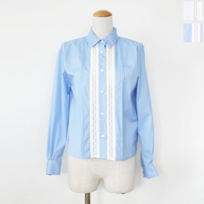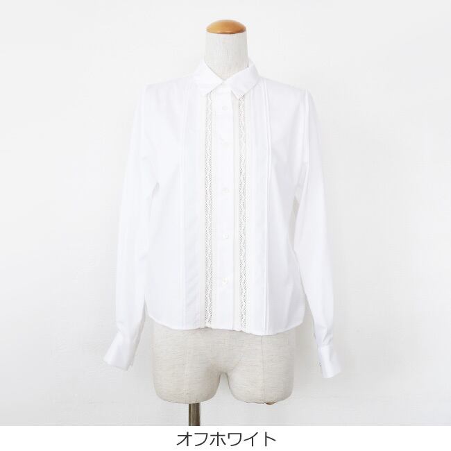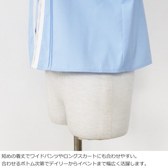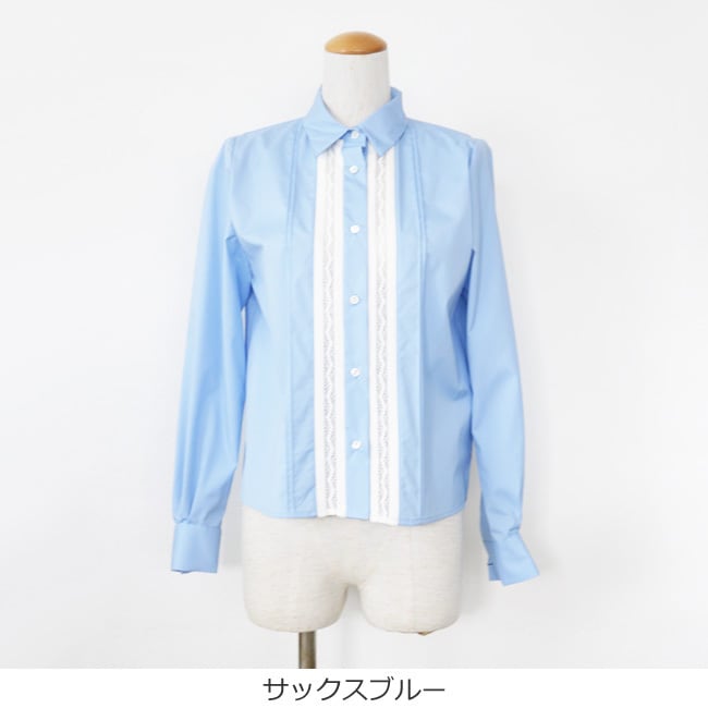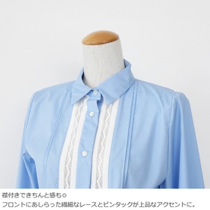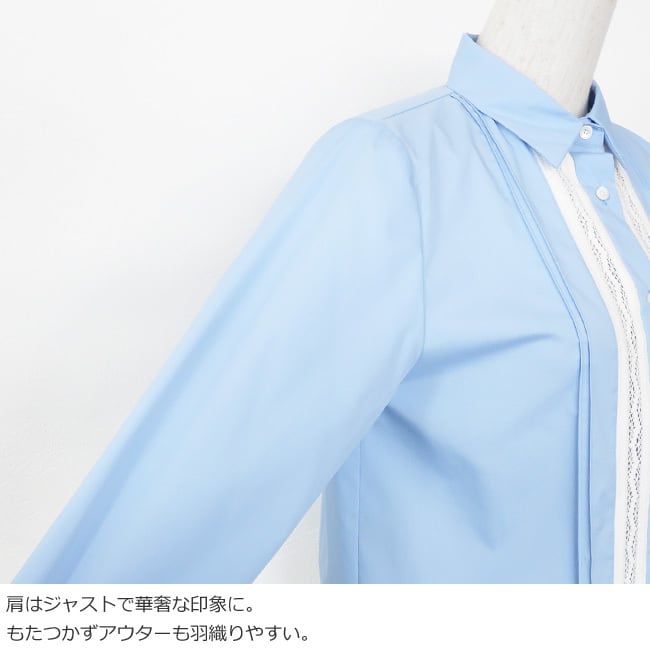 フロントにあしらった繊細なレースとピンタックが上品な印象を引き立てます。
