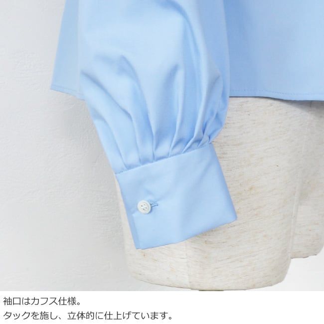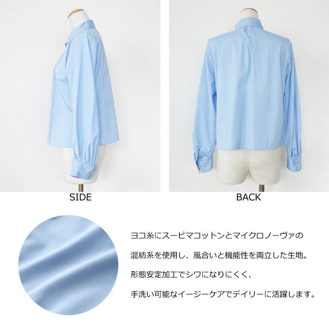 さらりとした肌触りで適度なハリ感のある生地を使用したブラウス。