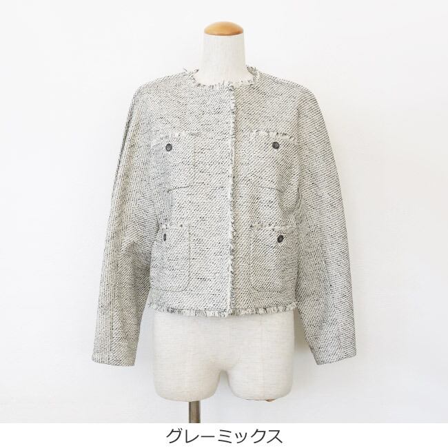 PASSIONE (パシオーネ) ジャケット ノーカラー ショート ツイード 616404