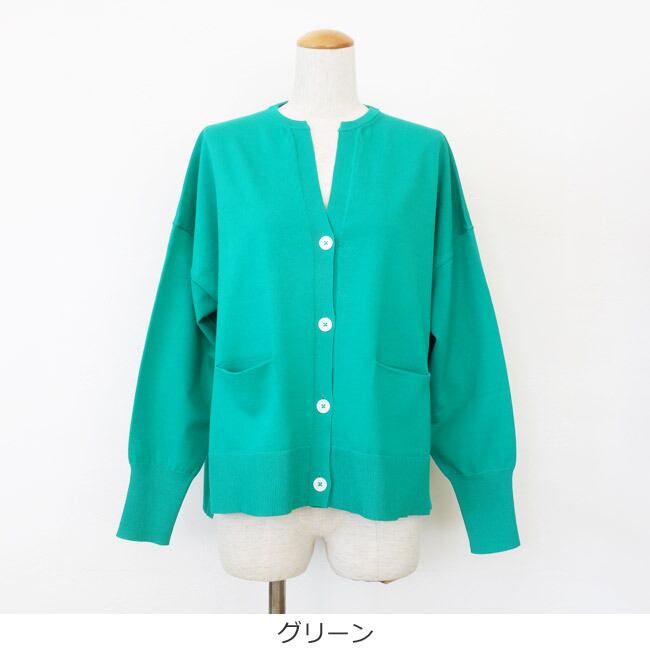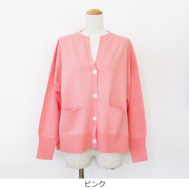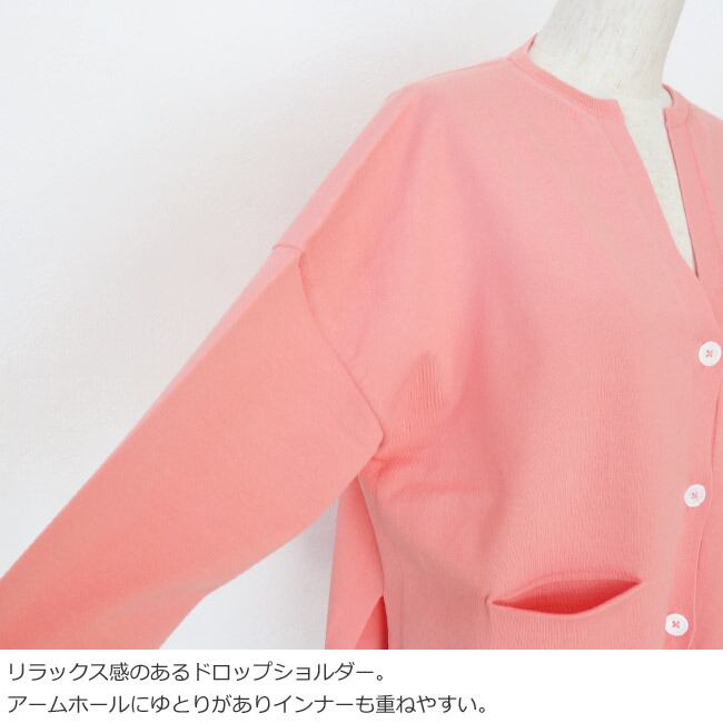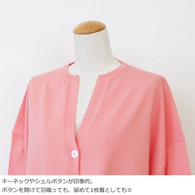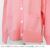 さらりとした肌触りの綿ポリエステル素材を使用したニットカーディガン。