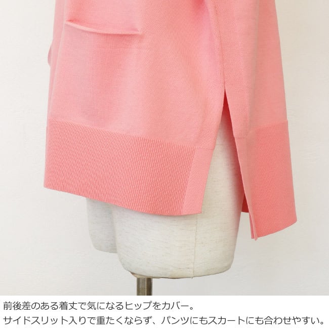 PASSIONE (パシオーネ) ニット カーディガン キーネック ポケット サイドスリット 長袖 616974