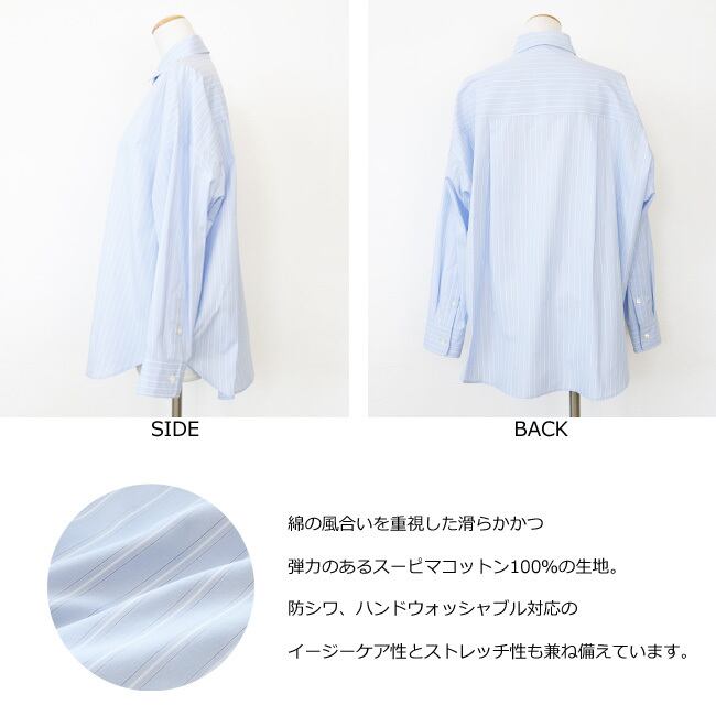 スーピマコットンを100%使用したポプリン素材のストライプシャツ。