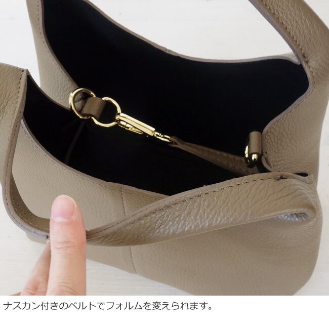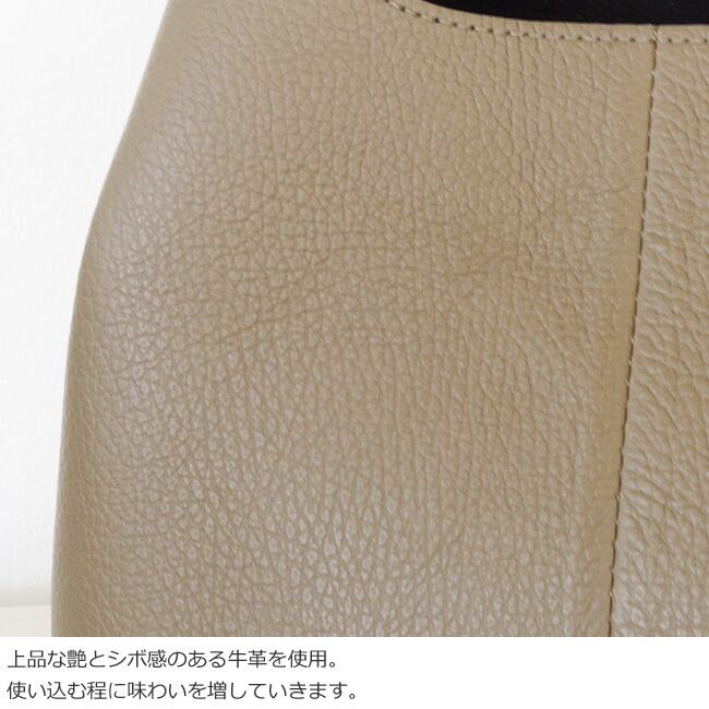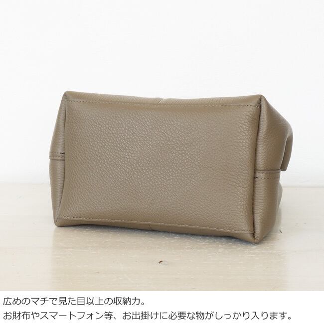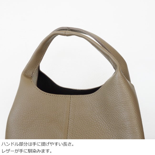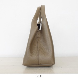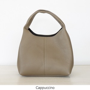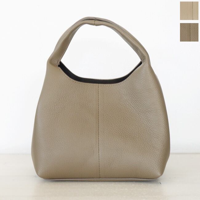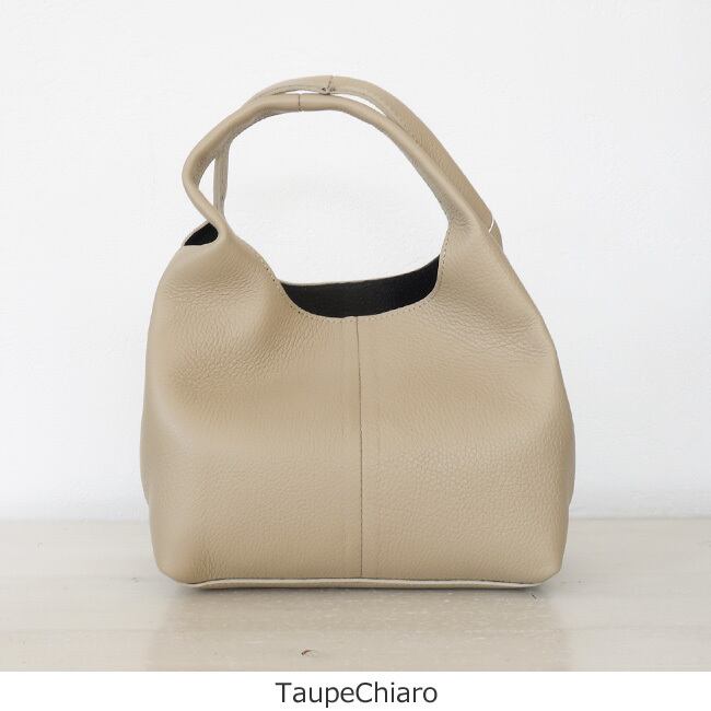 上品な艶とシボ感のあるレザーを使用した程よいサイズ感のハンドバッグ。