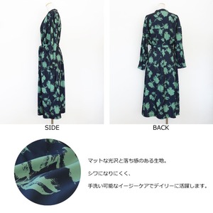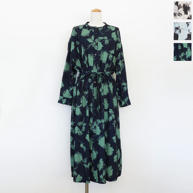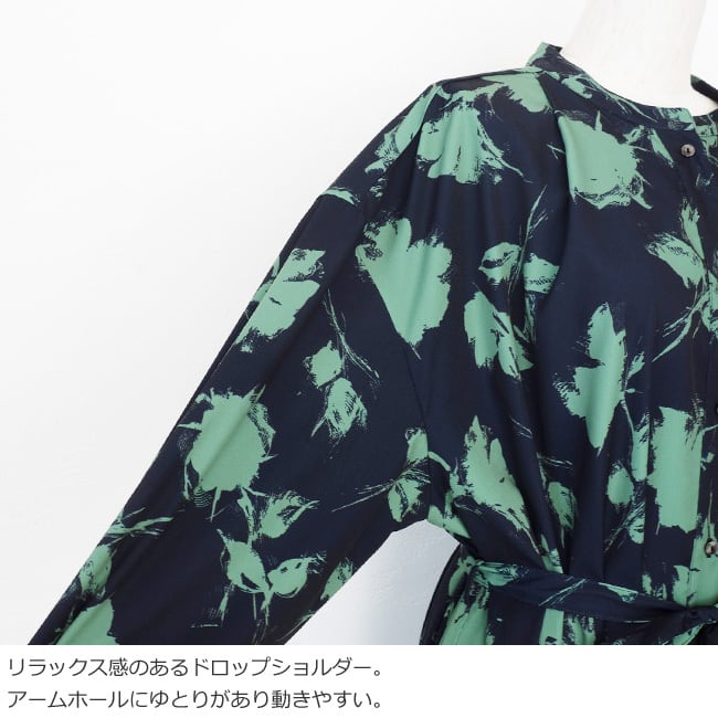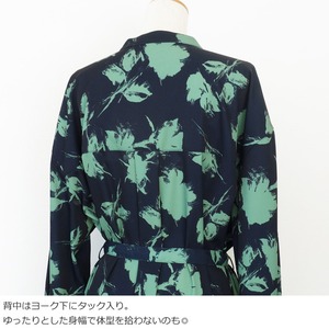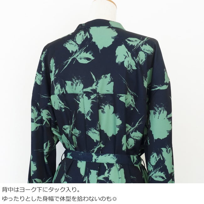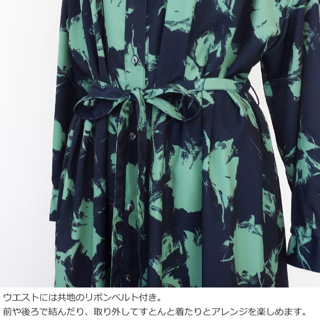 ESPEYRAC (エスペラック) シャツワンピース プリント 花柄 長袖 ロング ウエストリボン 7613601