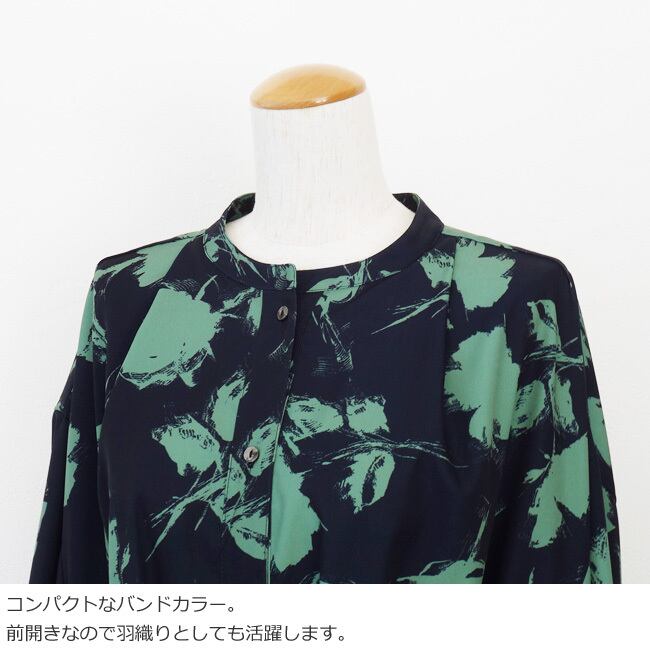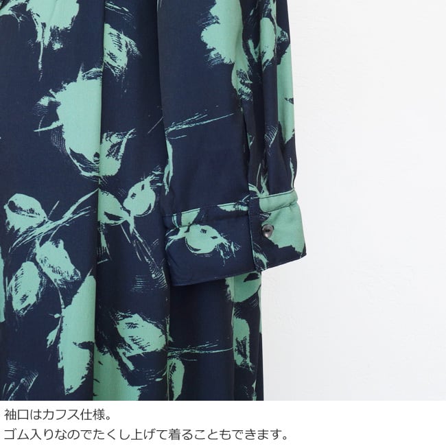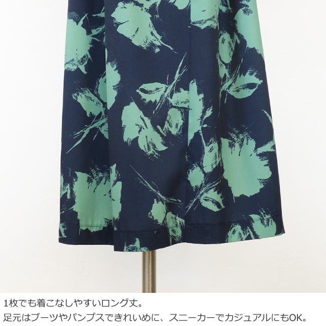 ラフなタッチで描かれた単色のフラワープリントで大人っぽく着こなせます。