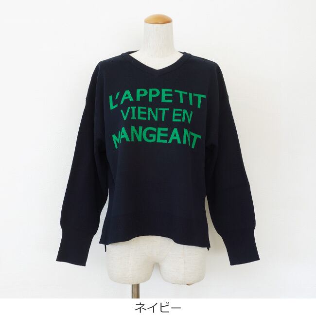 PASSIONE (パシオーネ) ニットプルオーバー Vネック ロゴ サイドスリット ドロップショルダー 616968
