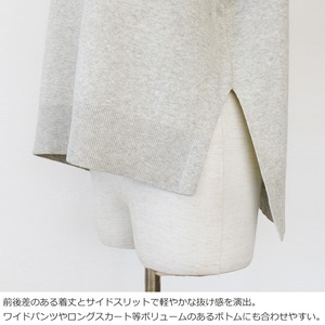 Vネックやドロップショルダー、サイドスリットがさり気ない抜け感を演出。