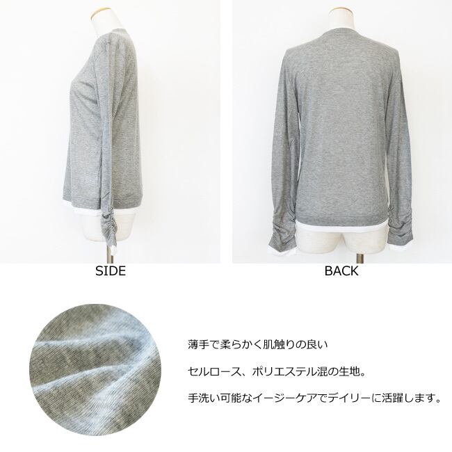 袖に施したシャーリングがさり気ない華やかさと女性らしさをプラス。