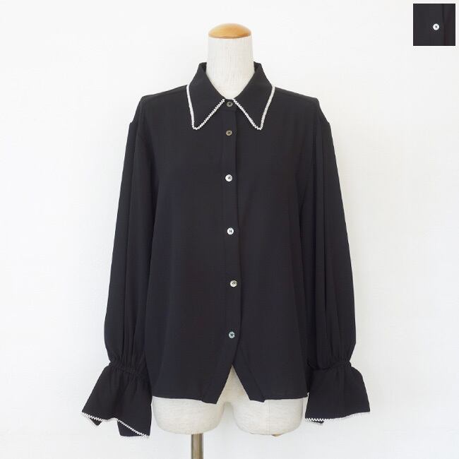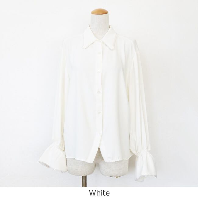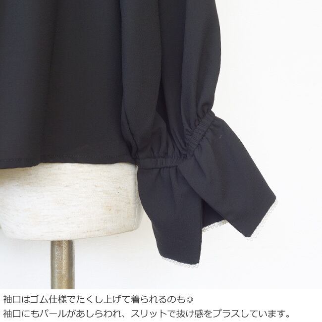 anana (アナナ) ブラウス パール ドロップショルダー 長袖 シフォン 袖口ゴム a59-047
