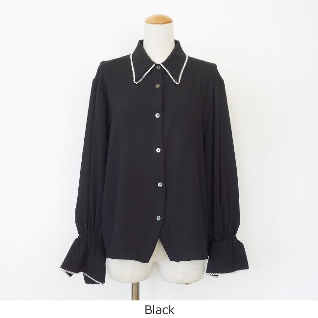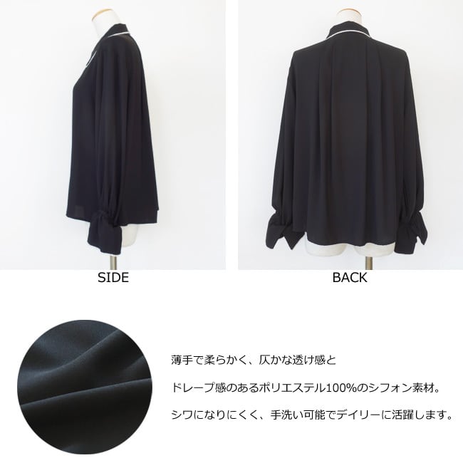 軽やかな落ち感のあるポリエステルシフォン素材を使用したブラウス。
