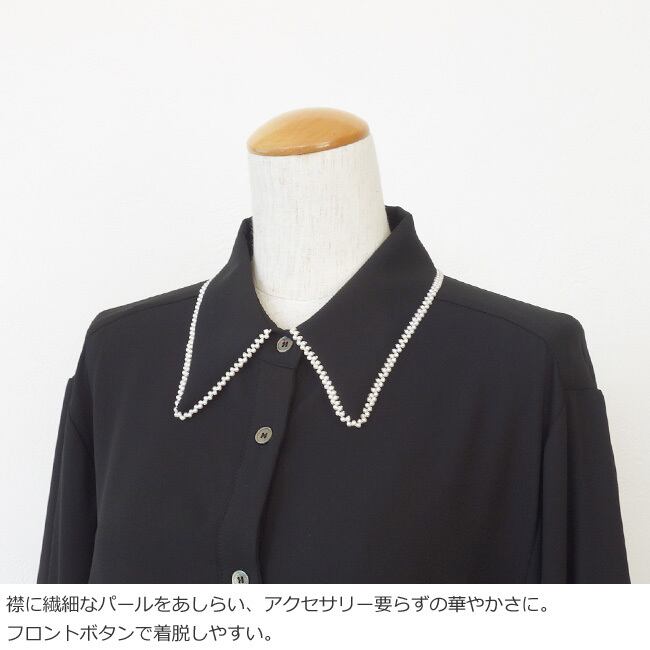 襟と袖口にあしらった繊細なパールが上品な華やかさをプラスしてくれます。