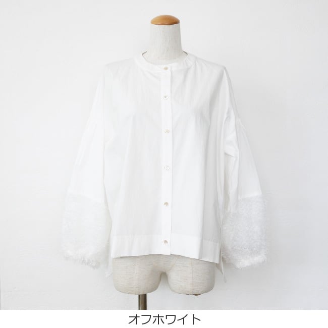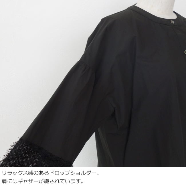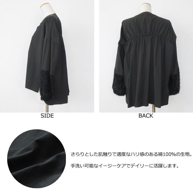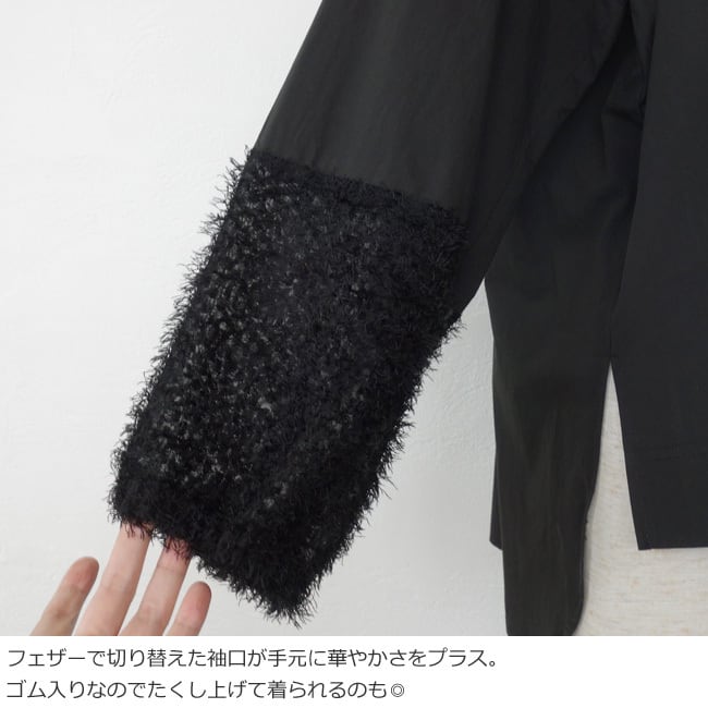 フェザーで切り替えた袖口が手元に華やかさをプラスしてくれます。