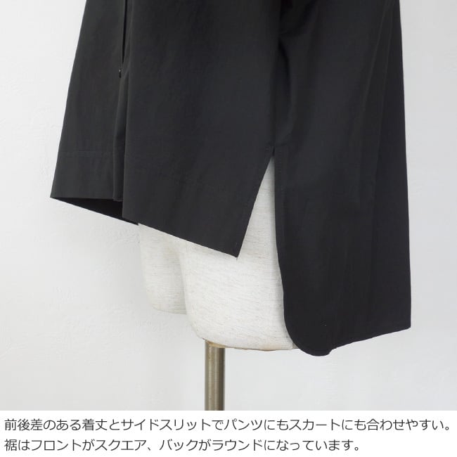 前後差のある着丈とサイドスリットで様々なボトムに合わせやすいアイテムです。
