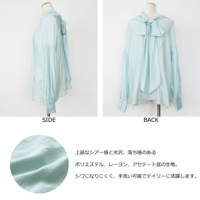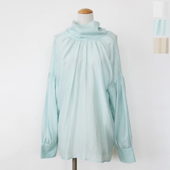 仄かな光沢と上品なシアー感のある生地を使用したプルオーバーブラウス。