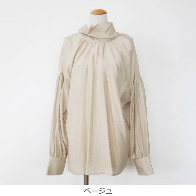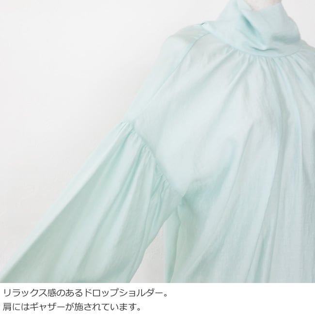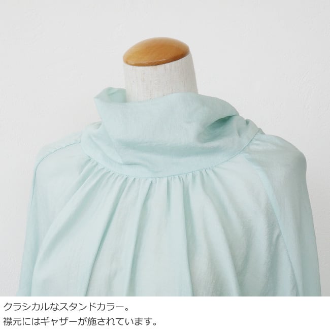 ギャザーでふんわりと仕上げたボリュームスリーブが女性らしい印象に。
