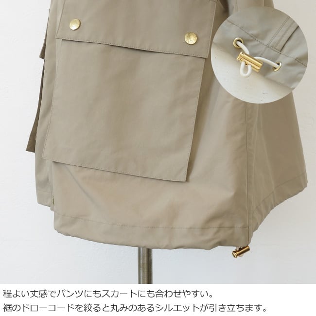 裾のドローコードを絞って好みのシルエットにアレンジできるのも◎