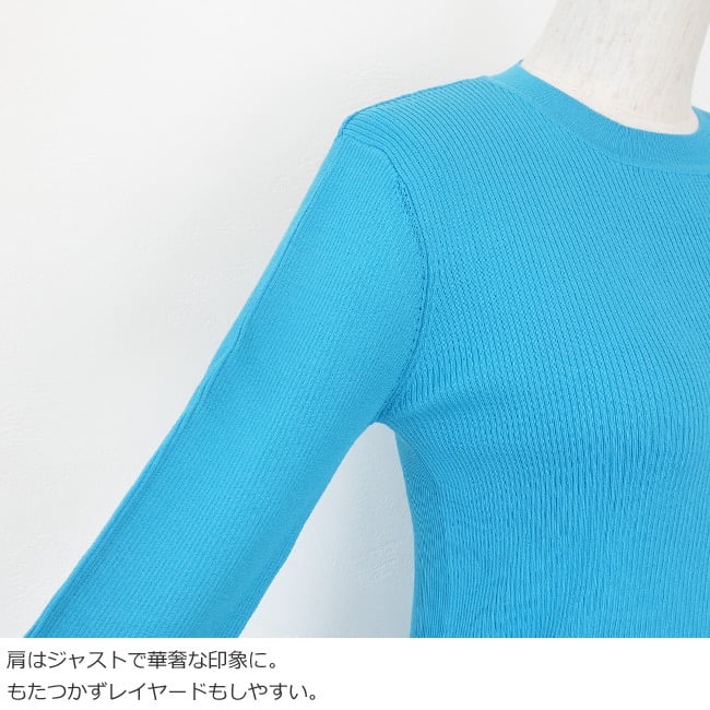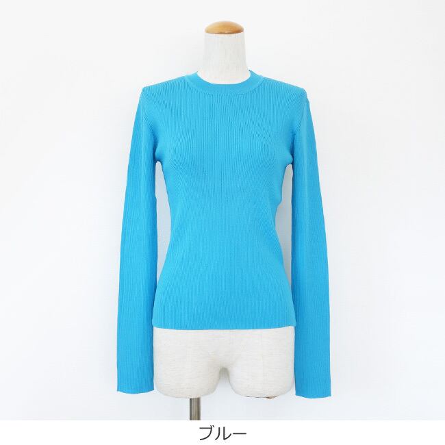 シャリ感のあるレーヨンナイロン混のリブニット素材を使用したプルオーバー。