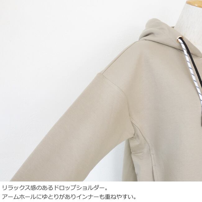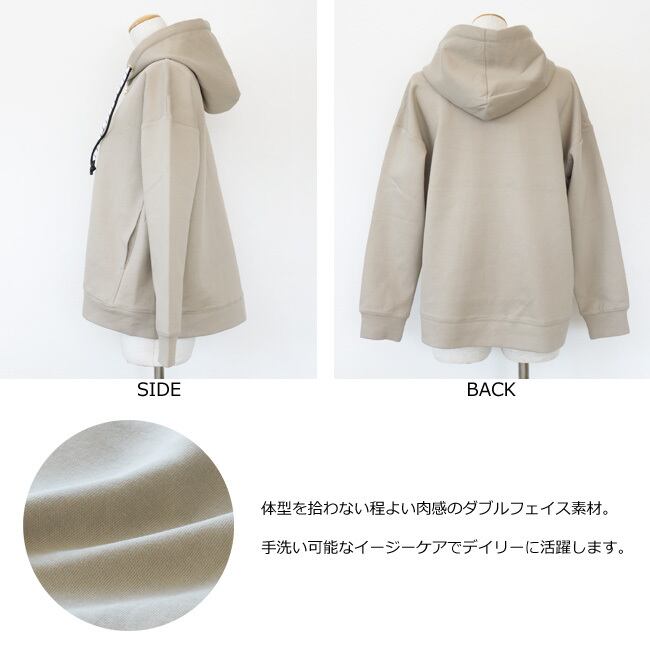程よい厚みでストレッチの効いたダブルフェイス素材を使用したパーカー。