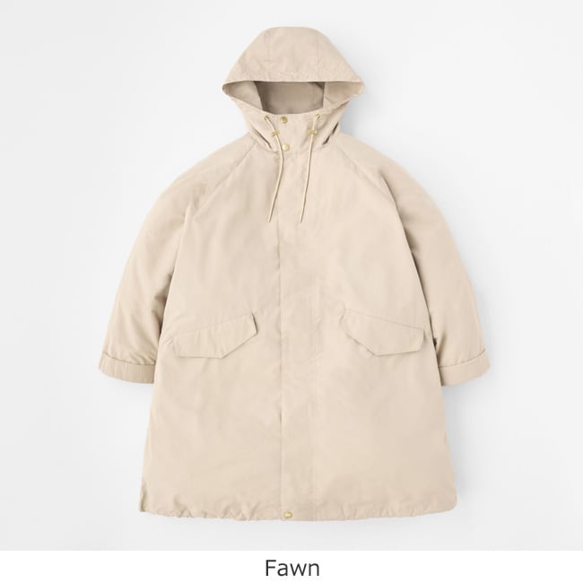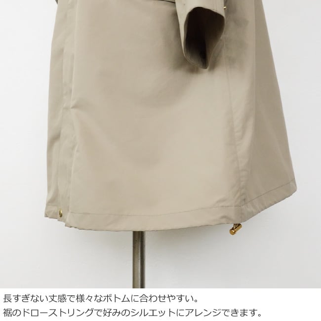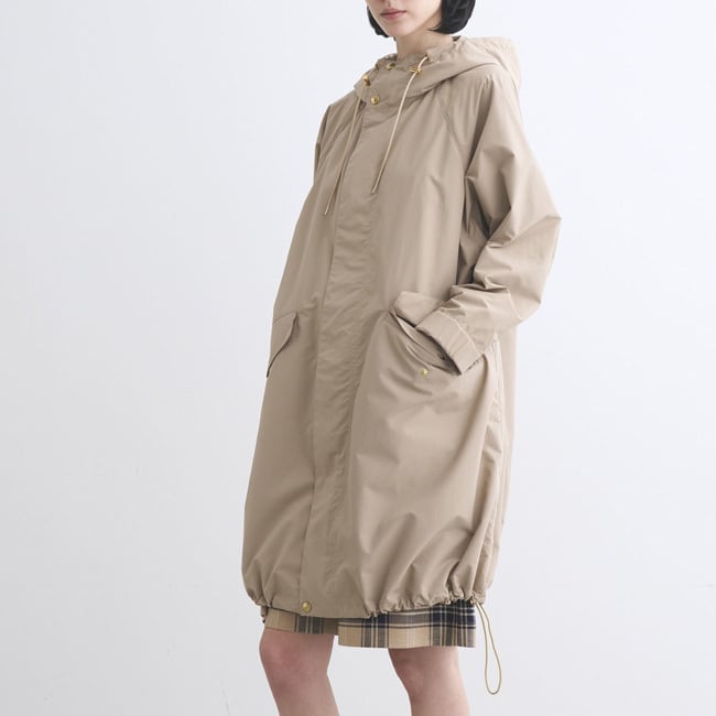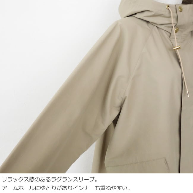 袖口は持ち出し付きで調節でき、裾のドローストリングでシルエットのアレンジもOK。