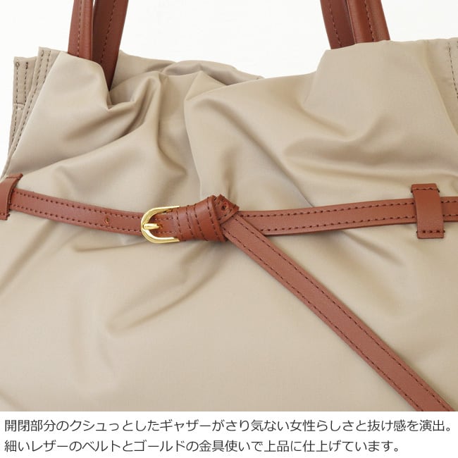 開閉部分にゴムを入れることでギャザーが生まれ、女性らしさと適度な抜け感を演出。