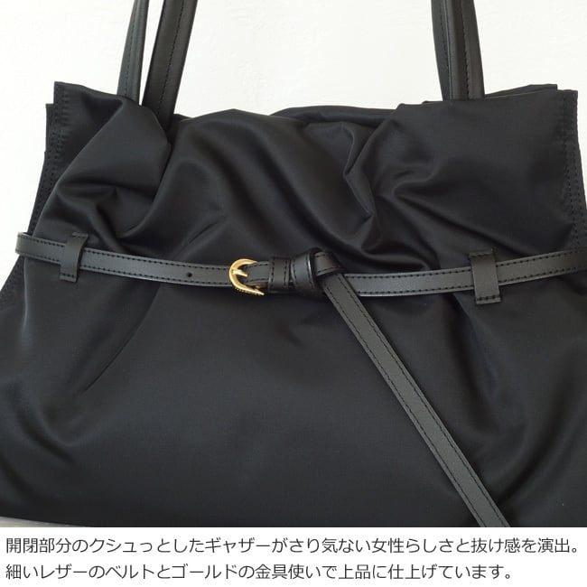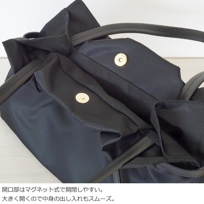 開閉部分にゴムを入れることでギャザーが生まれ、女性らしさと適度な抜け感を演出。
