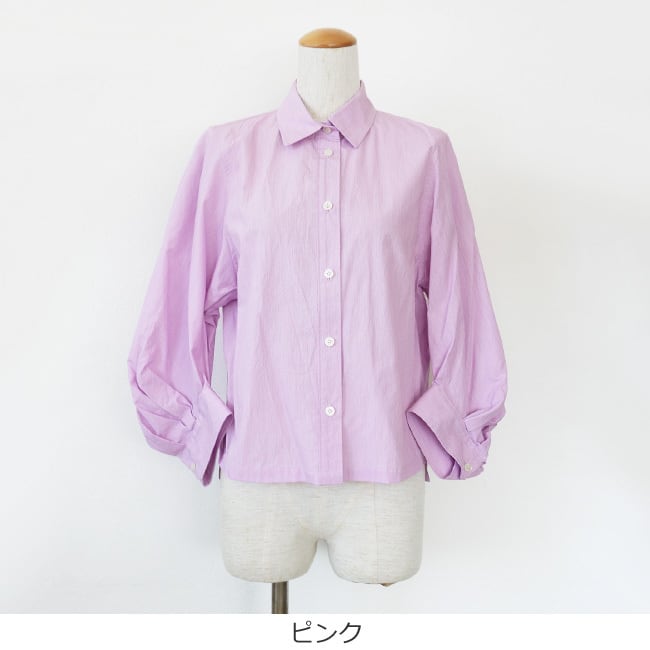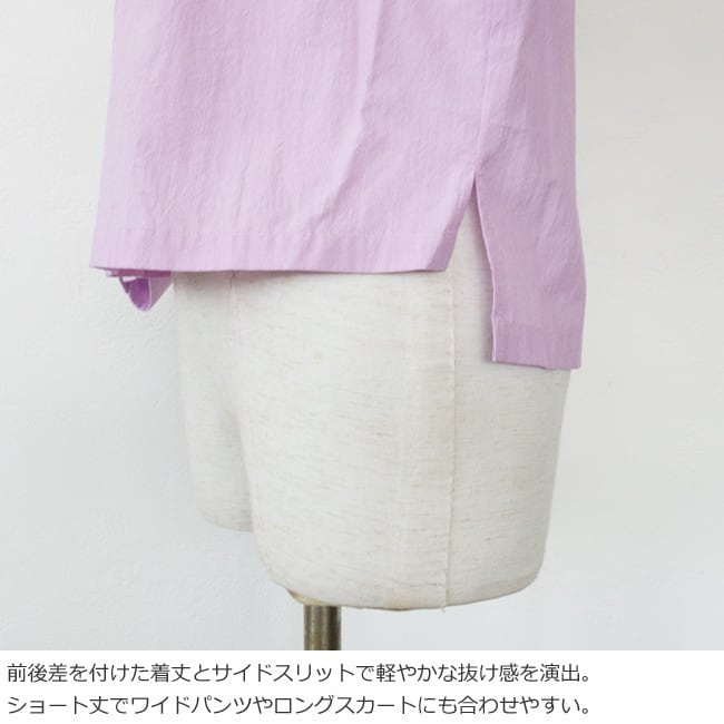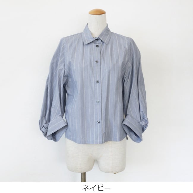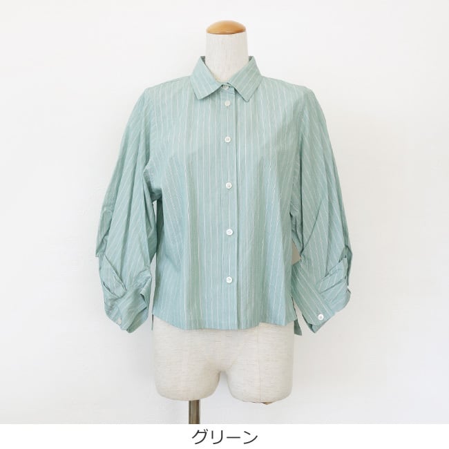 PASSIONE (パシオーネ) シャツ ストライプ 袖タック ショート サイドスリット ウォッシャブル 616955