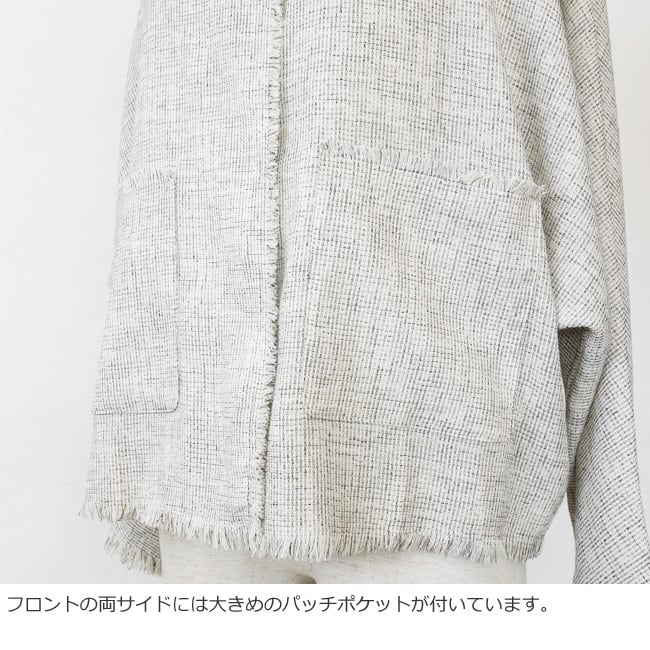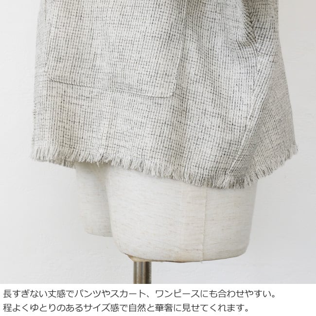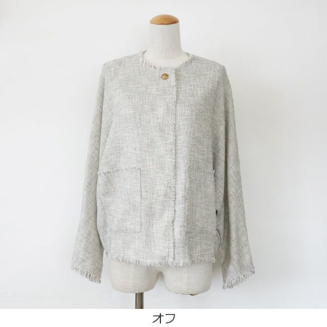 cafune (カフネ) ジャケット メッシュツイード ノーカラー ドルマンスリーブ フリンジ 長袖 615401