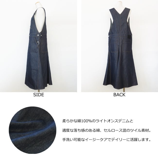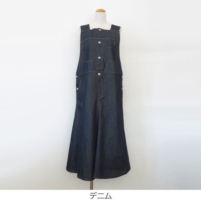 カジュアルな素材感やワークテイストなディテールがポイントのジャンパースカート。