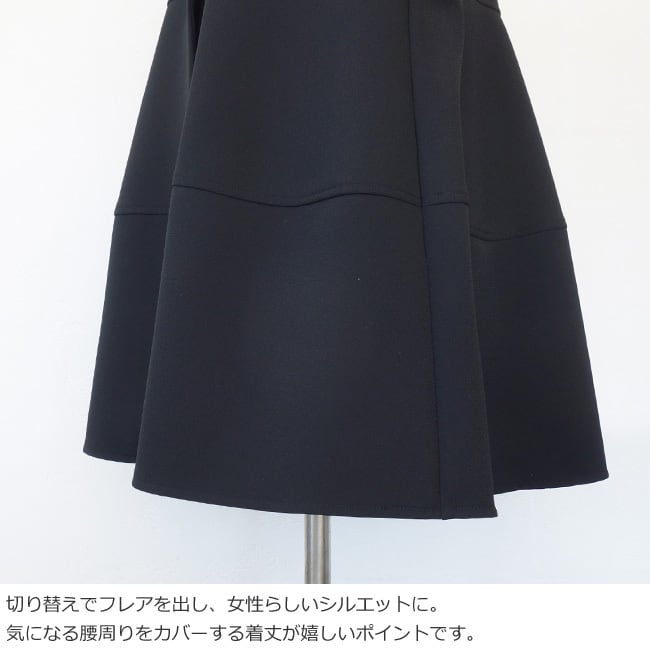 切り替えでフレアを出し、女性らしいシルエットに仕上げています。