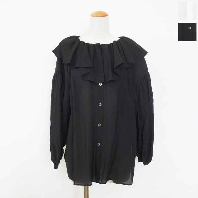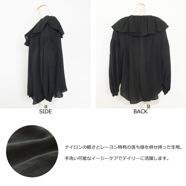 cafune (カフネ) ブラウス フリル 2WAY 長袖 ギャザー ラウンドヘム ドロップショルダー IPEKER 615914