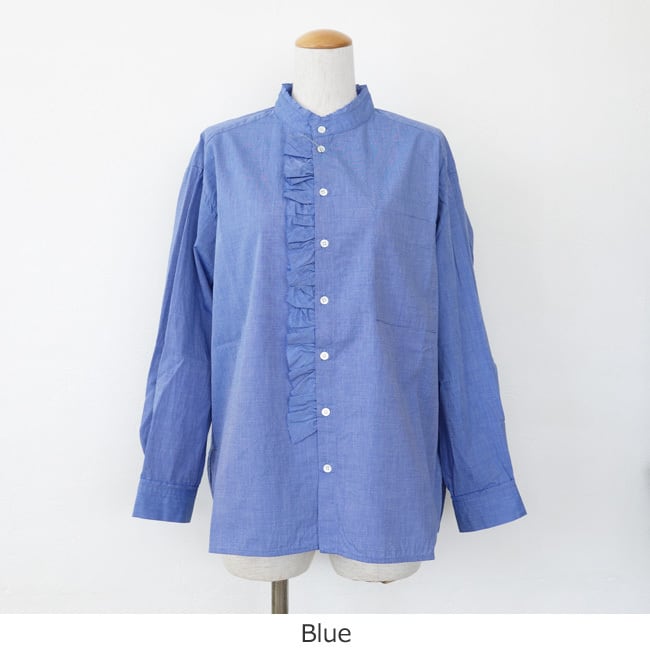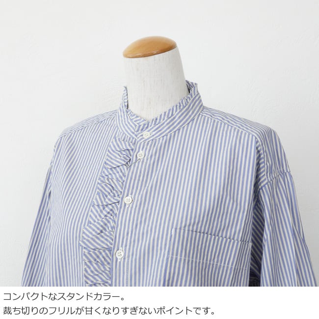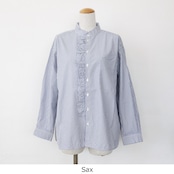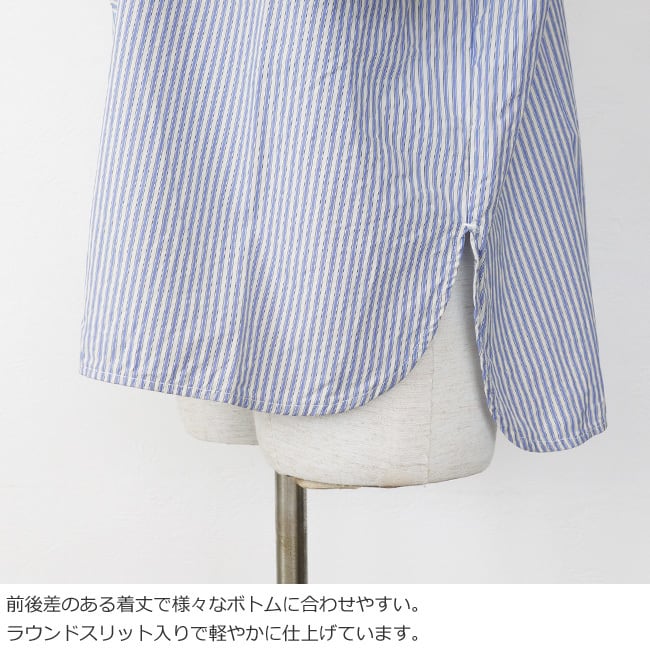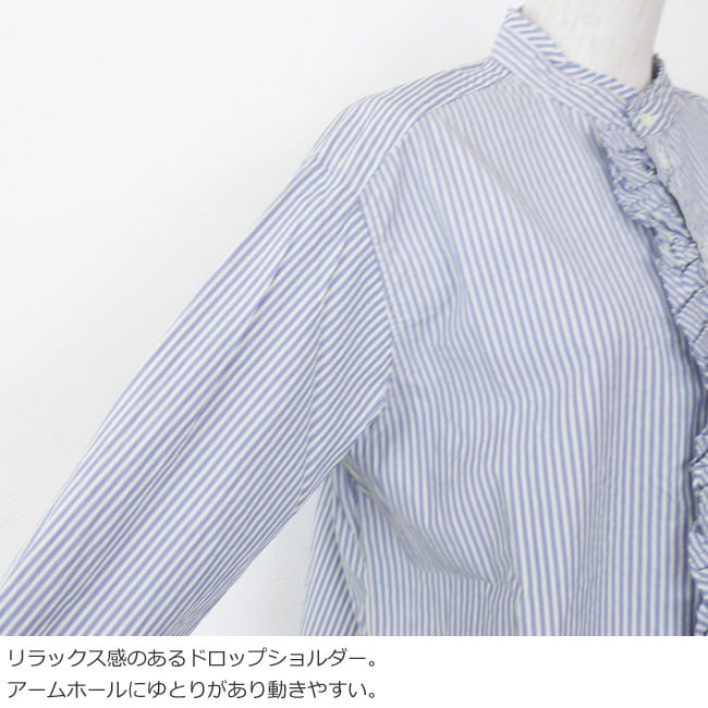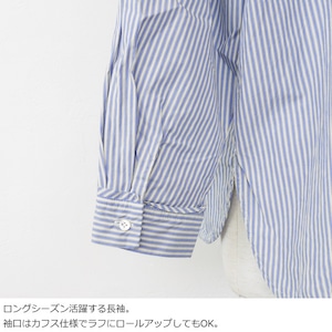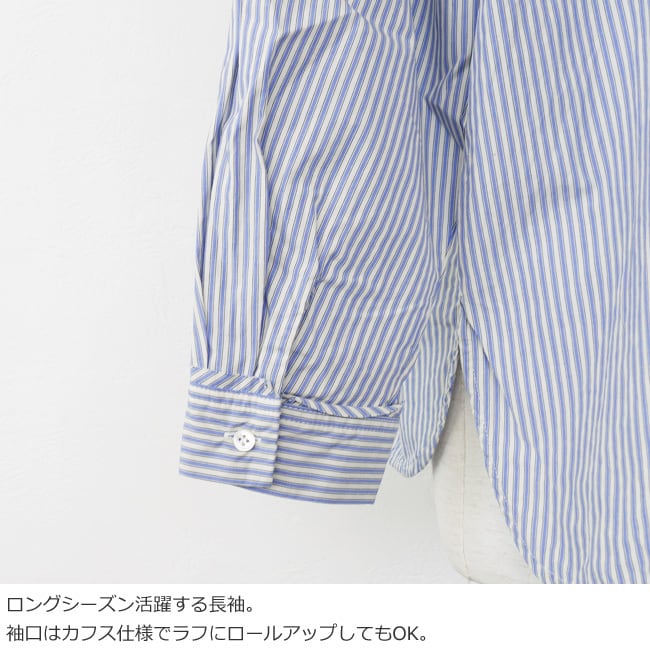 通気性の良いストライプクロスと柔らかなアメリカンブロードクロスを使用したブラウス。