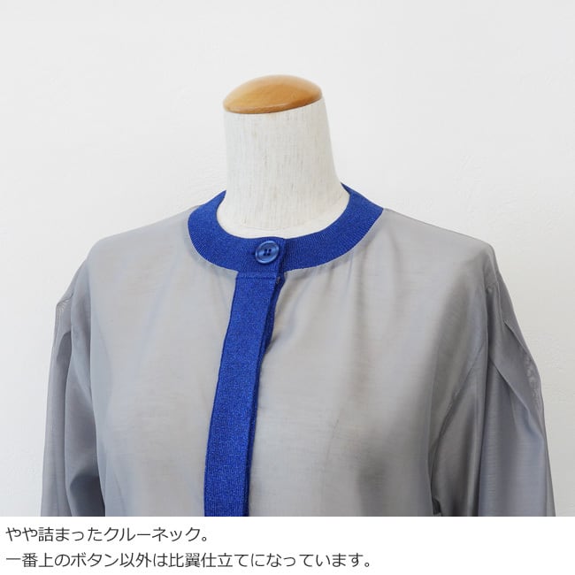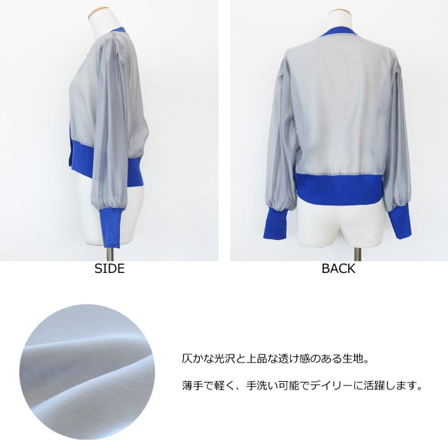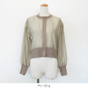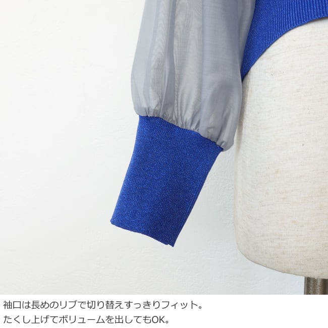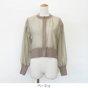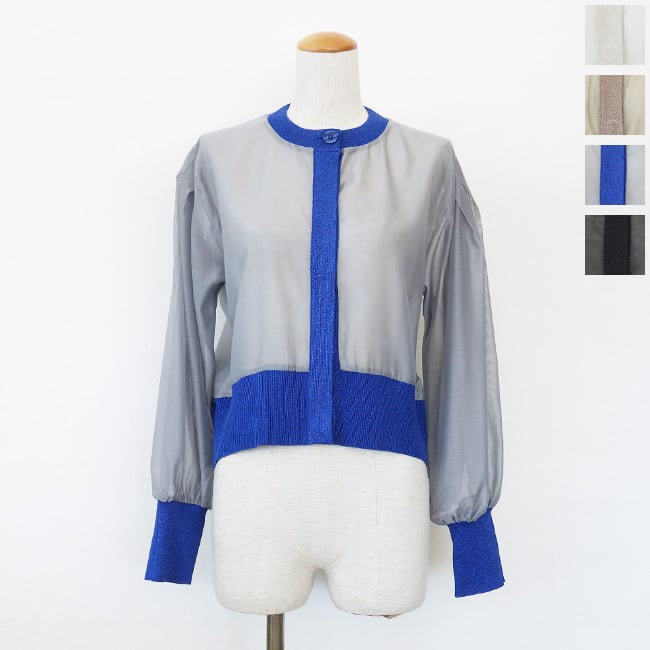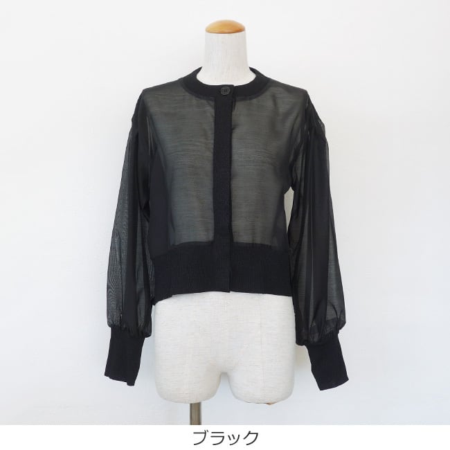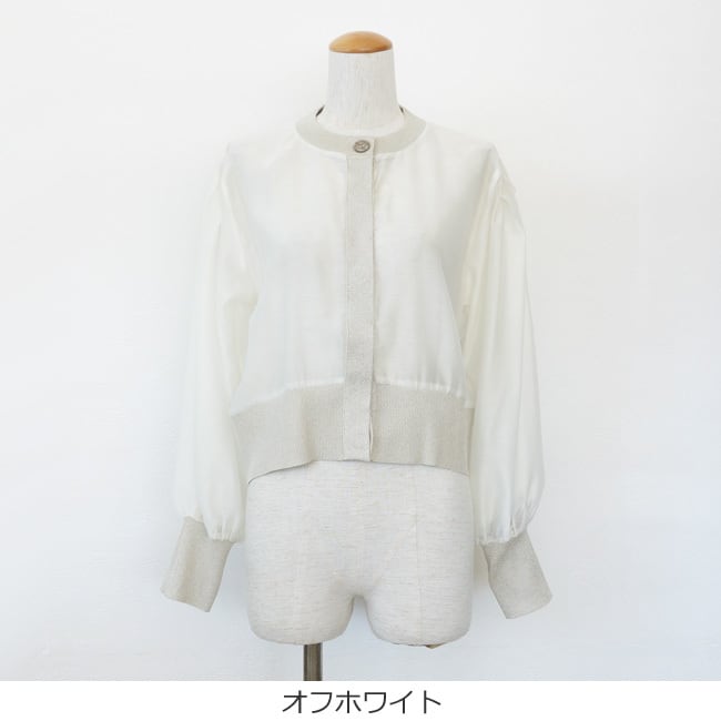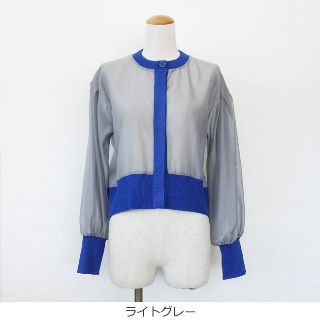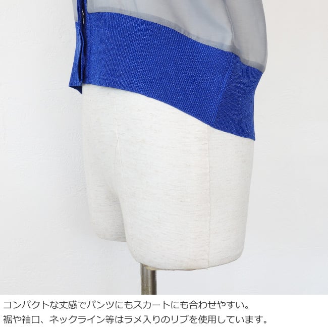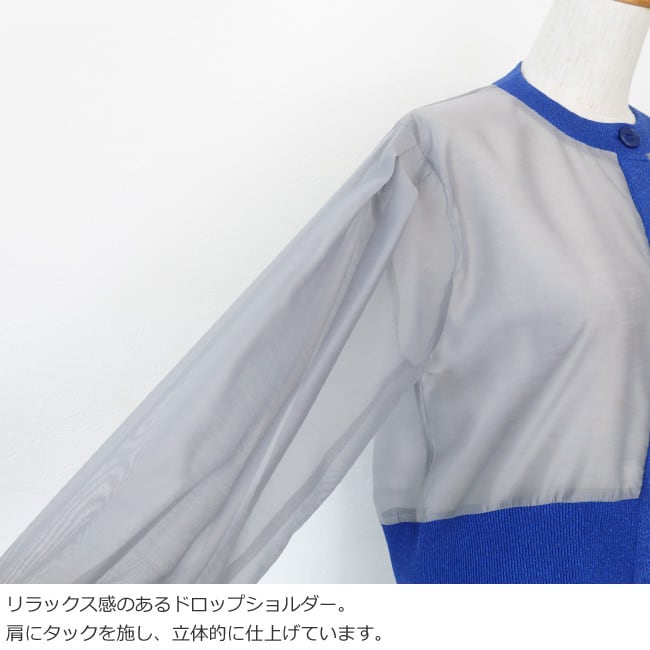 シアー素材とラメニットを使用した異素材使いのカーディガン。