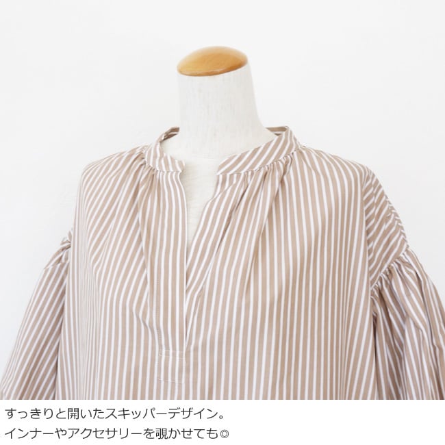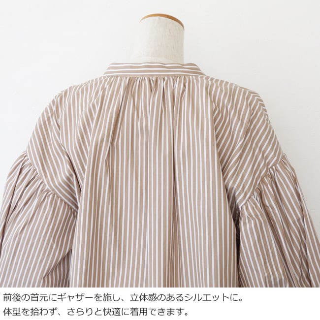 前後にギャザーを施し、立体感のあるシルエットに仕上げています。