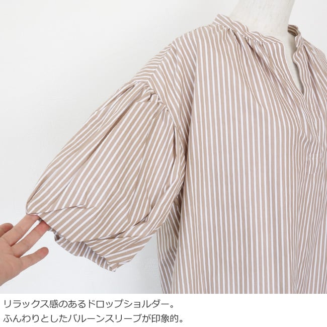 ふんわりとボリュームのあるバルーンスリーブが印象的なワンピース。