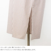 すっきりと開いた襟元や両サイドのスリットが女性らしい抜け感を演出。