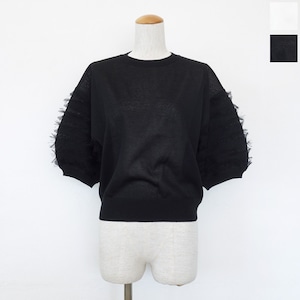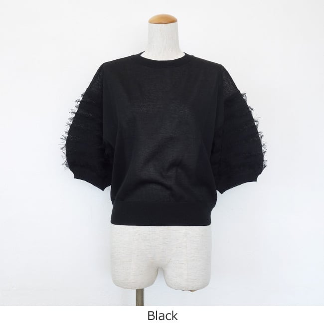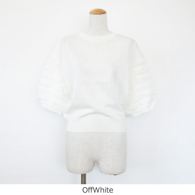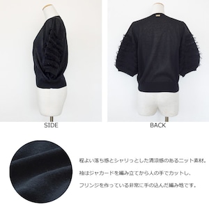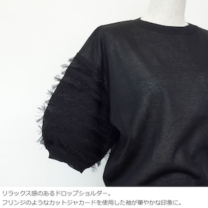 MICA&DEAL (マイカアンドディール) ニットプルオーバー フリンジスリーブ 5分袖 0126108041