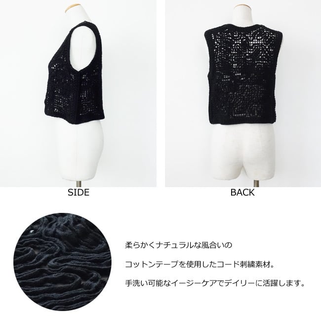 cafune (カフネ) ベスト コード刺繍 ノーカラー code embroidery vest 615919