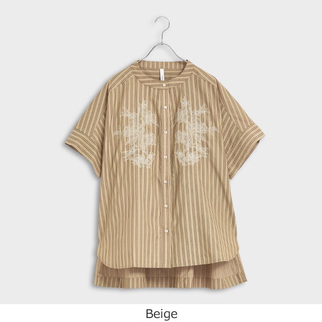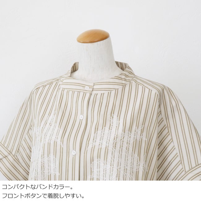 さらりとした肌触りで適度なハリ感のあるストライプ生地を使用したブラウス。