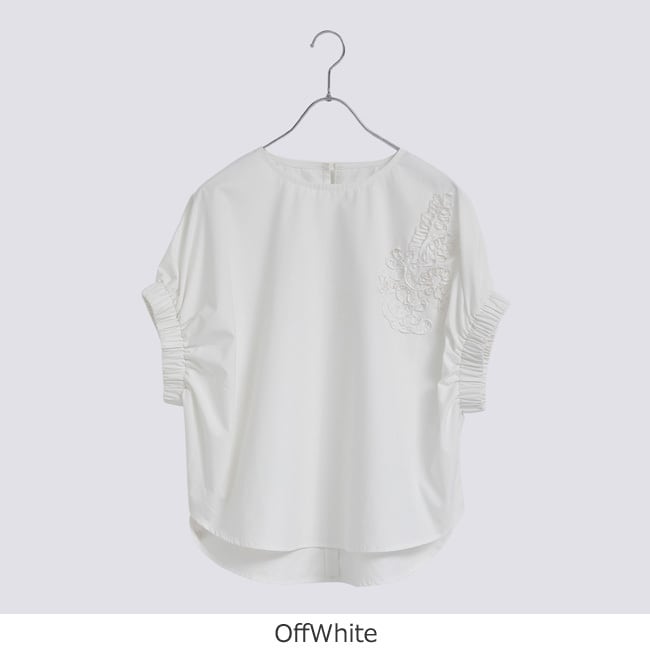 KELEN (ケレン) ブラウス コード刺繍 袖ギャザー ノーカラー PAKIA LKL26HBL2292