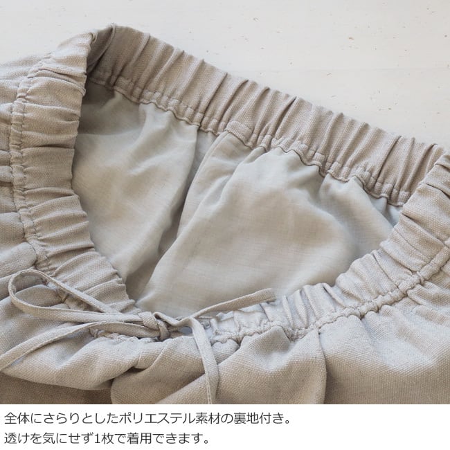 ウエストは総ゴム仕様で穿きやすく、紐が通っているのでサイズ調節もOK。