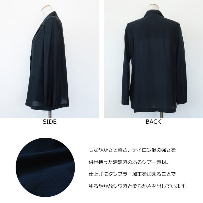 しなやかで軽く清涼感のあるシアー素材を使用したジャケット。
