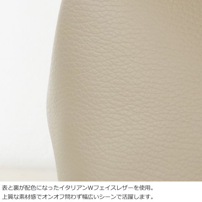 表と裏で表情の異なるイタリアンWフェイスレザーを使用したトートバッグ。