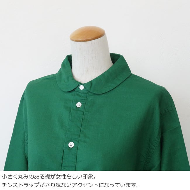 コンパクトなラウンドカラーが女性らしく、顔周りを優しく引き立てます。