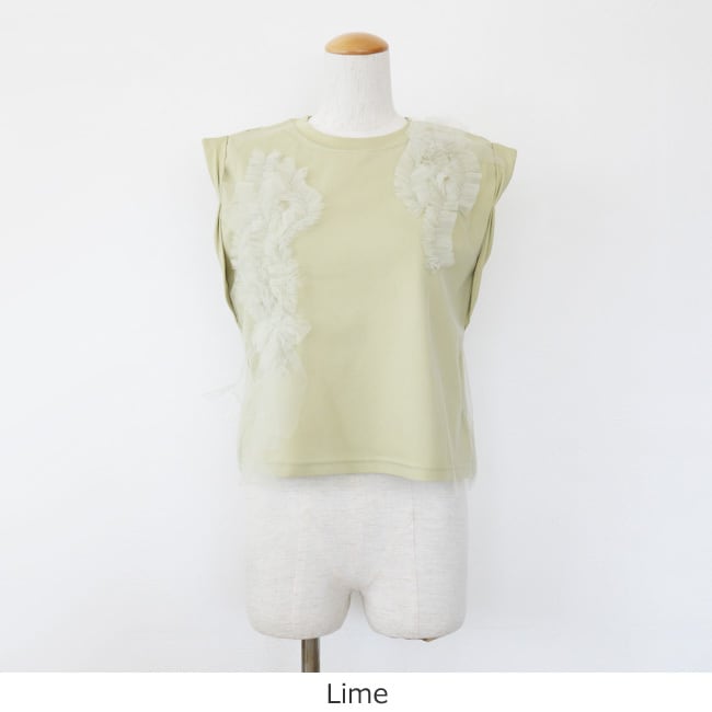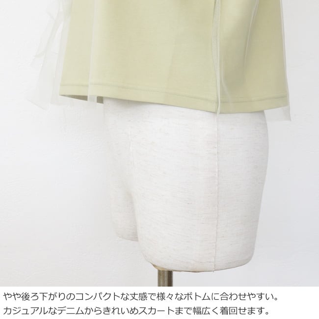 天竺素材のカットソーにチュールを重ねた異素材使いのプルオーバー。
